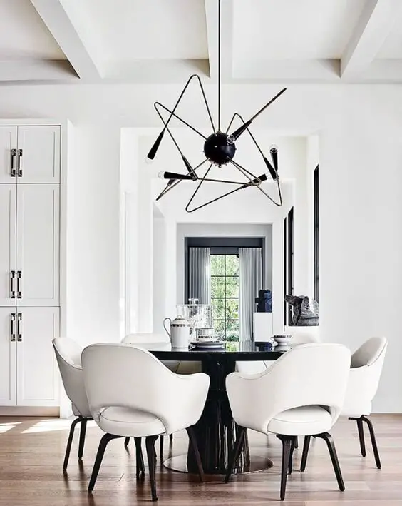 - Another thing to think about is the finish of the dining chairs in conjunction with the dining table legs or base. You either want to go for a high-contrast look or stick to the same type of finish for your table base and table legs, if not the exact same finish. If you’re going to try and match the dining table with the chairs, try to get an exact match. For instance, if you have a white oak table, try getting some dining chairs with that same white oak finish.