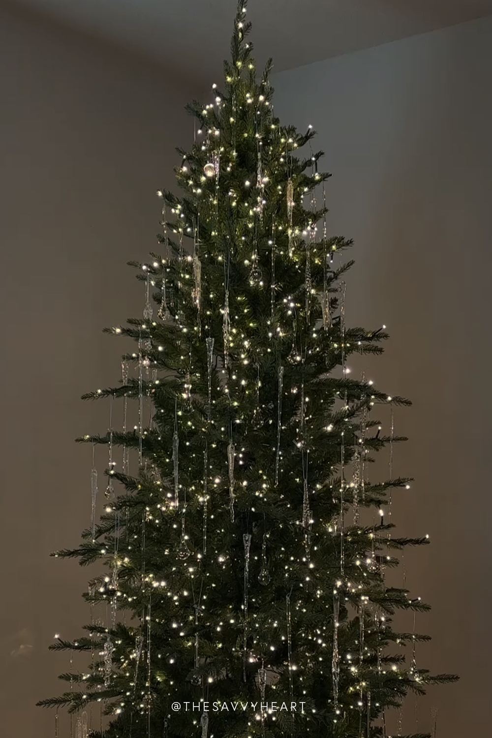 First up is my glass icicle Christmas tree! After lots of debating about my tree this year, I decided to keep it simple but make a statement with a bunch of different icicle ornaments. All hand-blown glass, because I’m just extra like that sometimes. The best part about this tree is that it is so easy to recreate. No crazy ribbons or ornaments… just a handful of different glass icicle ornaments dangling beautifully. I wrote up a separate blog post that outlines everything I used on my tree and linked some of the best items below, so take a peek at that if you want to get this look!
