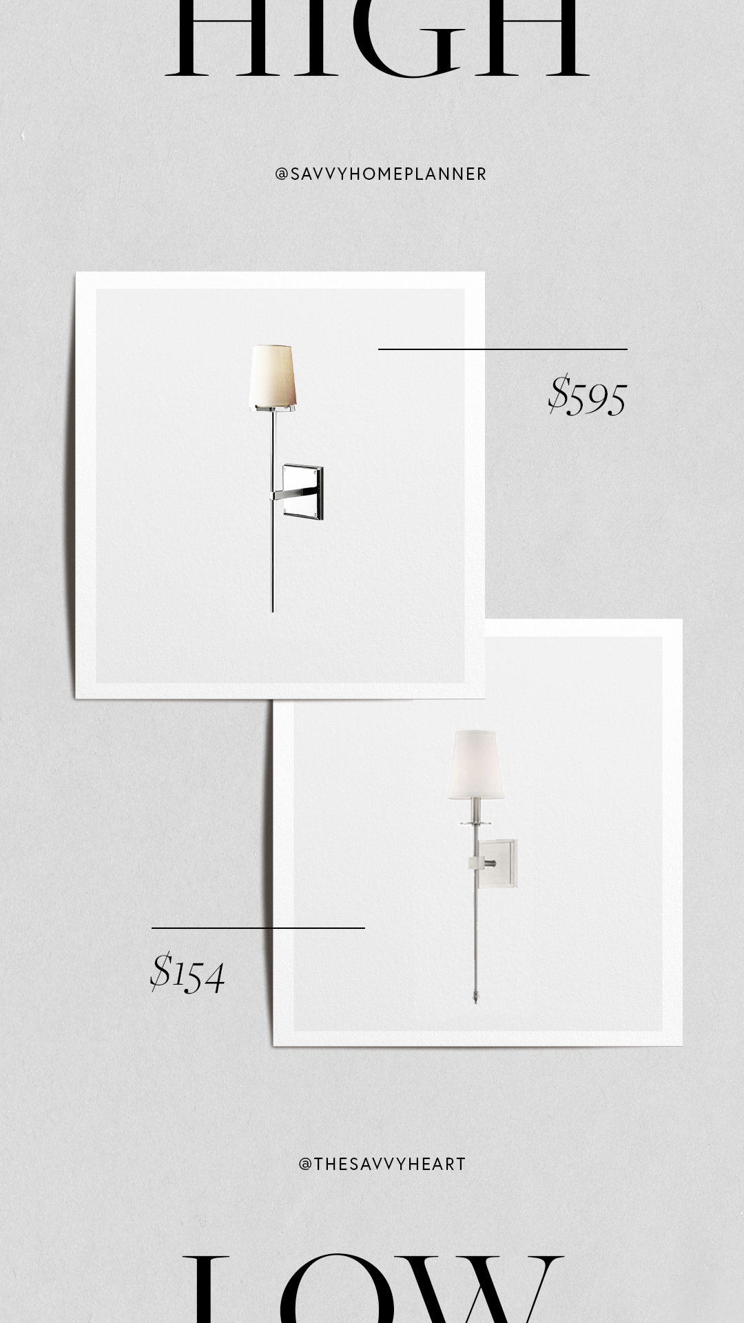 The next designer lookalike is a double-light wall sconce. It looks like it could be straight out of the McGee & Co. or Amber Interiors catalog. The high-end version retails for over $500, but I found a budget-friendly option for just over $100. The two sconces are very similar in size and feature forged metal.