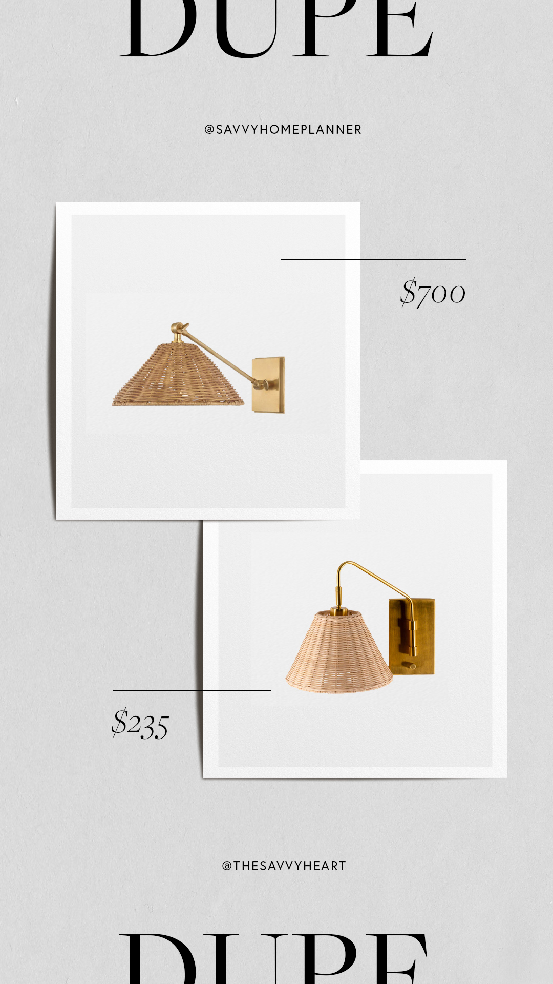 I found another great wicker/rattan wall lighting option… this time, a wall sconce. The high-end version from Visual Comfort retails for over $1000, but I found a dupe for just over a couple hundred dollars! The two sconces are very similar in size, but the budget-friendly option only comes in a brass finish.