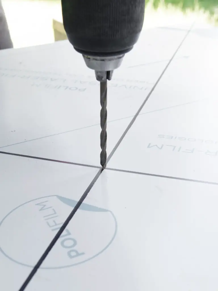 Our sheet metal had a slight flex to it, so in order for it to sit completely flat, I needed another flat surface. I had a piece of acrylic on hand, so we used that and I drilled the same size hole directly in the middle of it.